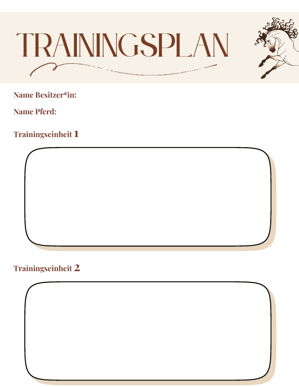 Nach einem erfolgreichen Kennenlernen und der Zusage zu einem Folgetermin erstelle ich dir dann basierend auf meinen Beobachtungen und deinen Wünschen einen Trainingsplan. Er dient dir als Orientierung und Veranschaulichung. So behältst du im Training den Überblick.